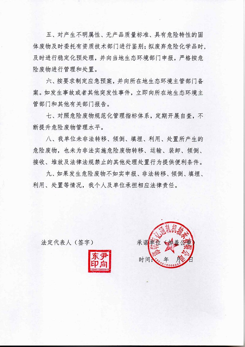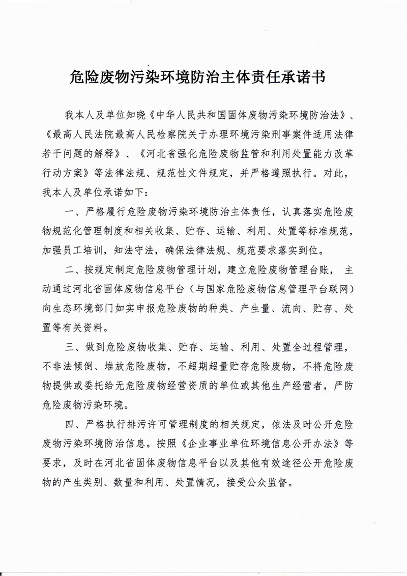 危险废物污染环境防治主体责任承诺书