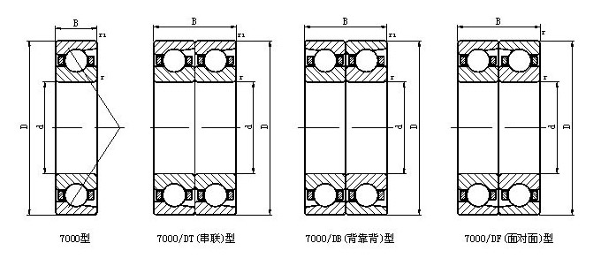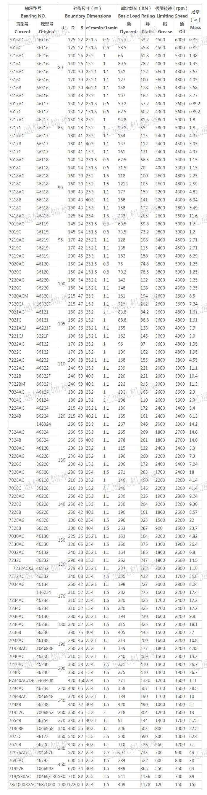 角接触球轴承极限转速较高,可同时承受径向负荷和轴向负荷,有可承受纯轴向负荷,其承受轴向负荷的能力有其接触角决定,接触角越大轴向负荷能力越大,通常不超过40°,属于向心推力型角接触球轴承。该类轴承在轧机轧辊轴向定位上应用广泛。